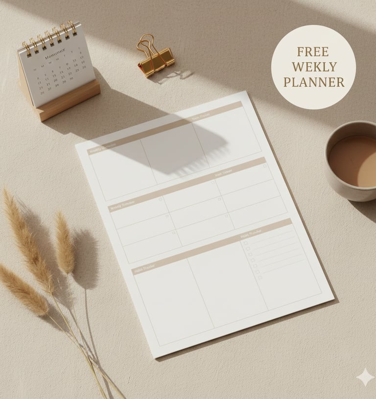 Plan your entire week with clarity — goals, habits, schedule, tasks, and mindset in one minimal weekly layout.